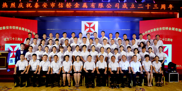 8月8日,泰安市信橋金屬有限公司成立二十三周年慶在泰安帝苑大廈多功能廳舉行。