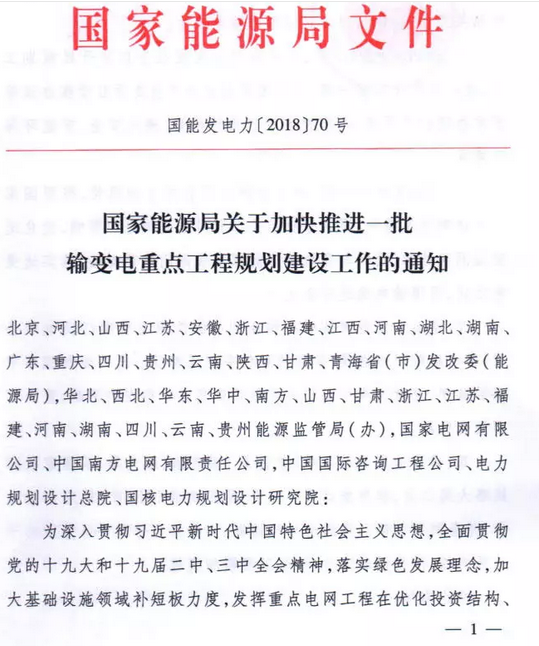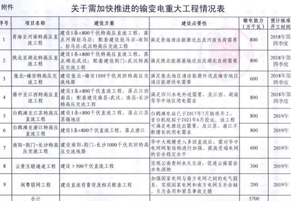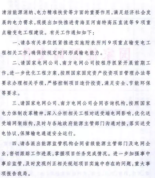9月7日獲悉,國家能源局印發(fā)《關(guān)于加快推進一批輸變電重點工程規(guī)劃建設工作的通知》國能發(fā)電力〔2018〕70號,《通知》指出,為加大基礎(chǔ)設施領(lǐng)域補短板力度,發(fā)揮重點電網(wǎng)工程在優(yōu)化投資結(jié)構(gòu)、清潔能源消納、電力精準扶貧等方面的重要作用,加快推進青海至河南特高壓直流、白鶴灘至江蘇、白鶴灘至浙江特高壓直流等9項重點輸變電工程建設,合計輸電能力5700萬千瓦(工程見附件)。