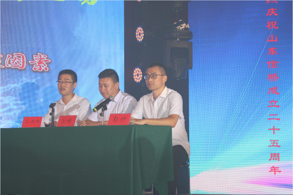 此次慶典晚宴參加人員除了信橋全體員工之外,還有部分老領(lǐng)導(dǎo)和老朋友,大家共同分享了信橋二十五周年的喜悅與精彩。慶典開始之前,演員們辛勤排練,燈光師、音響師共同配合,所有人為了晚會(huì)都在努力。下午5點(diǎn)28分,晚會(huì)正式開始,全體員工與領(lǐng)導(dǎo)集體合影,各個(gè)辦公室全體員工也各自合影。